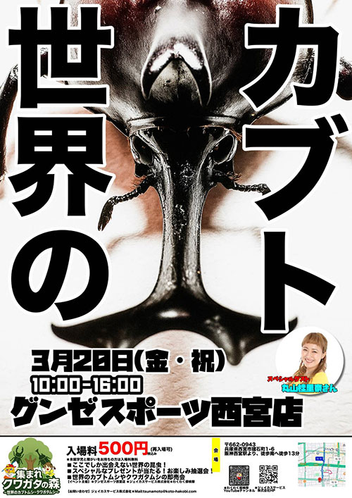 グンゼスポーツ西宮店にて行われる「世界のカブトムシ展」に出店いたします!